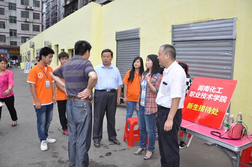 在中心汽车站迎新接待点,有三位刚下长途汽车的新生正在等待学院的校车接送到新校区,学院领导与他们一一握手,欢迎他们成为湖南化工职业技术学院的一份子,并对他们给予厚望,希望他们在新校区努力学习,力求上进。刘望紧紧握住新生的手,饱含深情地询问道:“你们是从哪里来的?坐车累不累?离开家习惯不习惯?”一句句温暖的话语融化了新生的心,让初次离开的家的新生们倍感亲切。刘望还骄傲的告诉新生:“湖南省去年有十所就业创业示范校,本科最好的是6所,高职院校是4所,我们化工职院排第一,你们要为化工职院争光?。 ?/span>