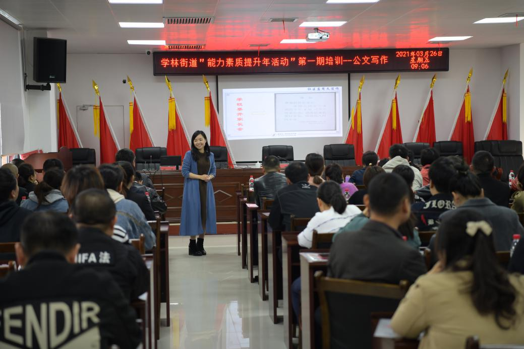 首先,有着丰富教学经验且教学方式独特新颖的邓滢副教授为与会人员就行政公文写作进行了一场生动有趣的讲座。针对街道、社区文职工作人员大多非中文专业出身,文字功底较弱等实际情况,她巧借案例,深入浅出,尤其是把请示与报告两种经常使用但又极易出错的文种讲授得清晰通透,赢得与会人员频频称赞。