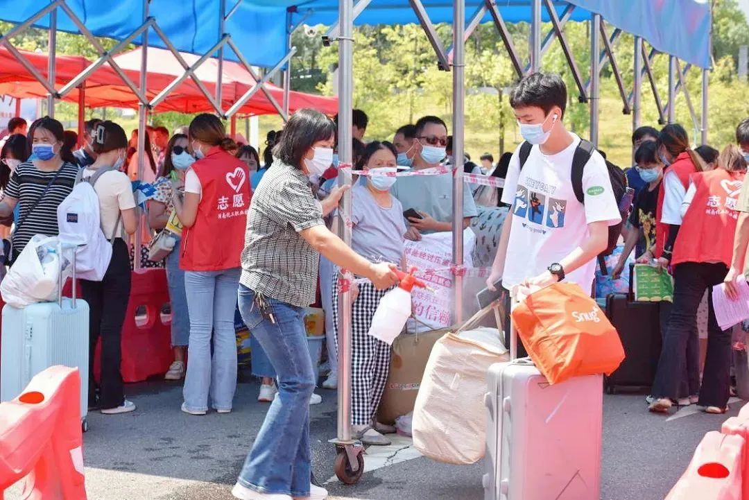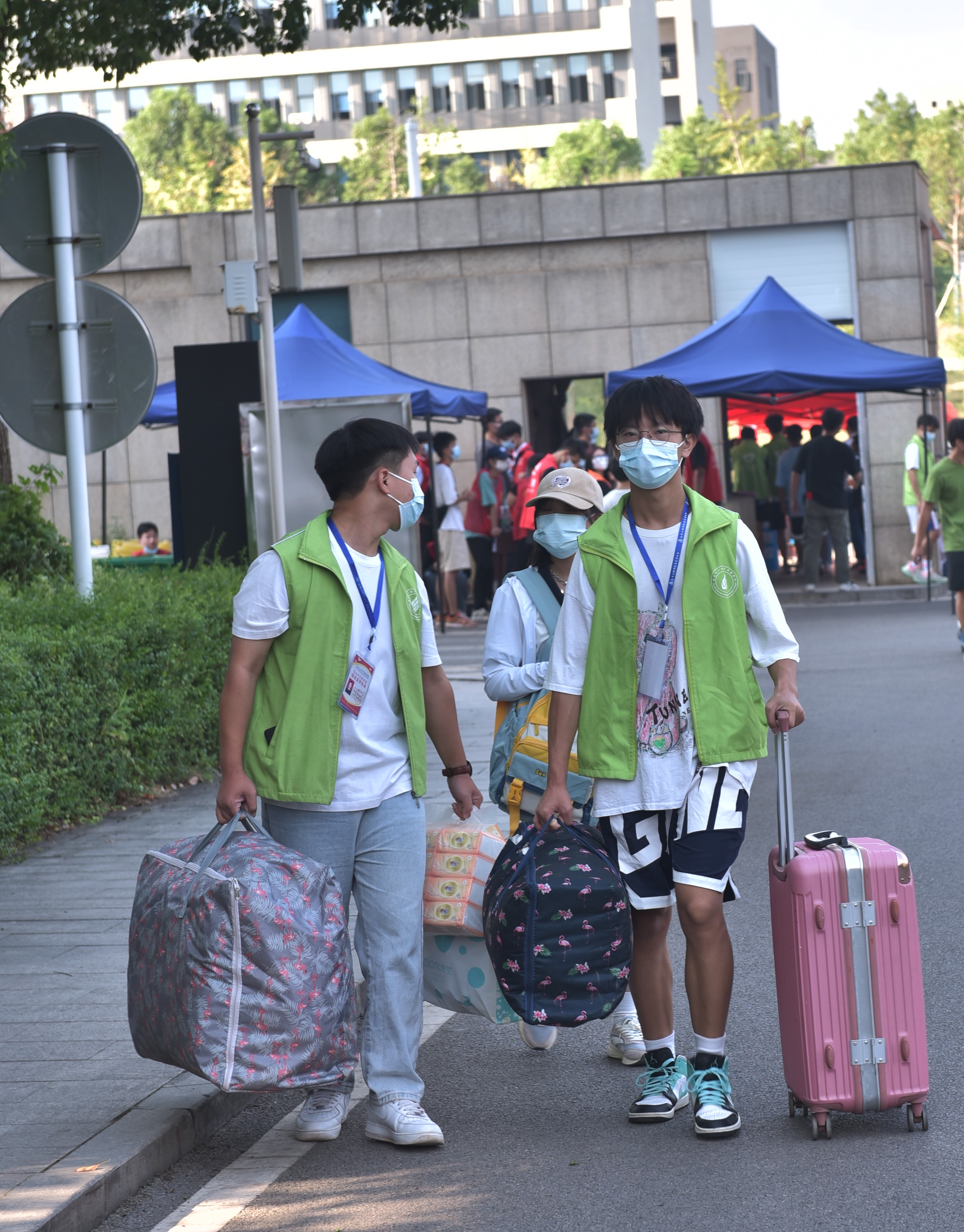 学校在株洲火车站、株洲西站等设置了新生接驳点,安排了专车送新生入校。外地新生抵株后学校志愿者将进行“两码一核酸”的查验,符合报到要求者经过行李消杀后可直接乘车入校,既方便学生又能保障安全。新生到达学校后,将在各个学院安排的志愿者引导下进入校门,安置行李、办理报到手续。