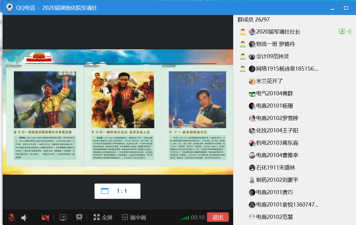 3月5日晚20点开始,湖南化工职业技术学院大学生社团军魂社召开QQ视频会议,与英雄对话,和榜样相聚,在网络上组织军魂社成员讲述红色故事。