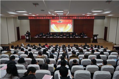 1月17日,湖南化工职业技术学院第二届教职工、工会会员代表大会第六次会议在图书馆报告厅召开。大会由学校党委副书记兼副校长石绍军主持。131名正式代表、10名特邀代表、3名列席代表共聚一堂,为学校发展建言献策。