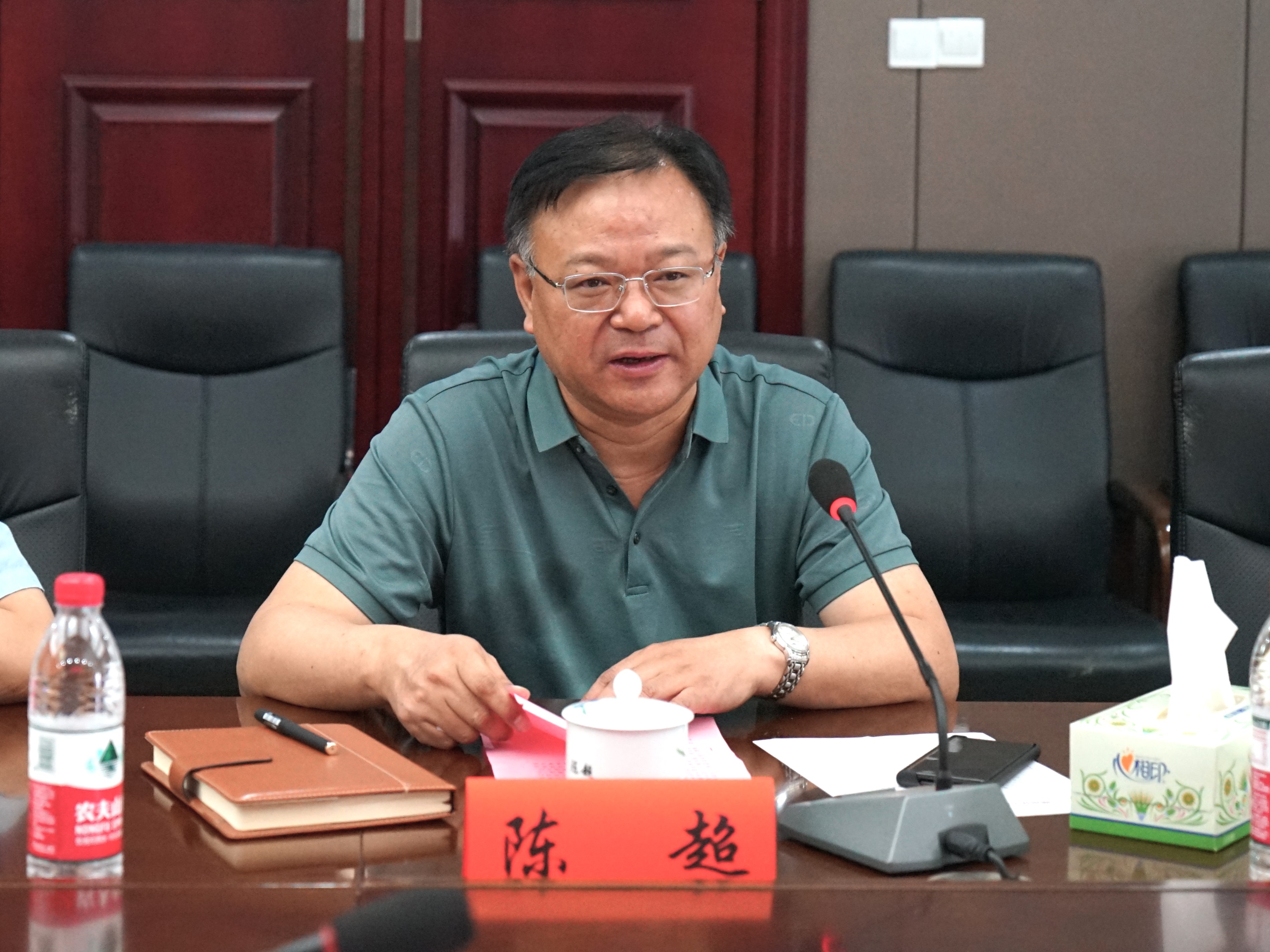 陈超在会上致辞,他对周伟斌一行来访表示热烈欢迎,并介绍了我校主题教育开展情况。