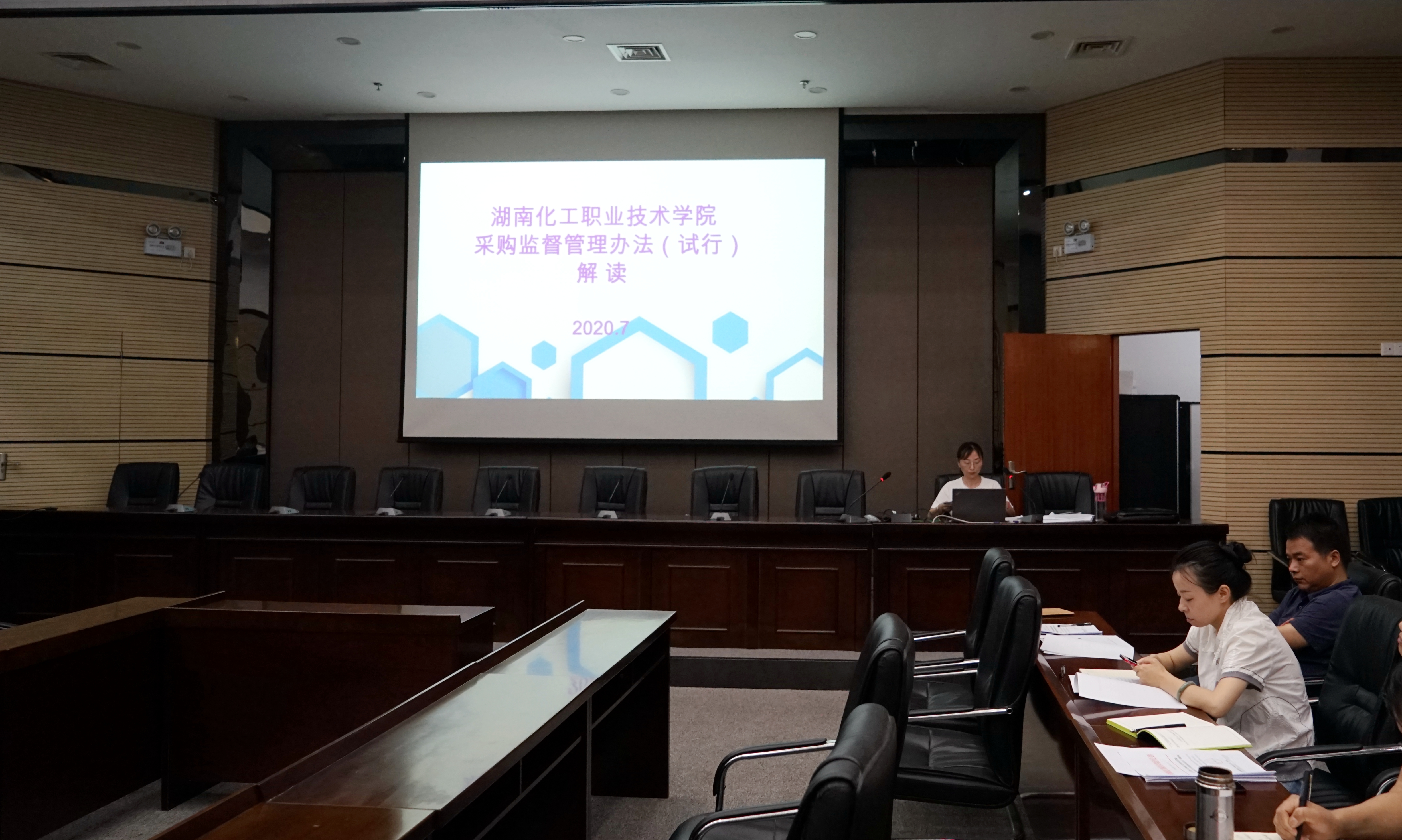纪委综合科科长旷玉妍同志对《湖南化工职业技术学院采购监督管理办法(试行)》进行了解读,具体对采购信息监督管理、采购过程监督管理、项目验收监督管理监督与问责以及备案中所要填写的表格进行了详细的说明与解读。