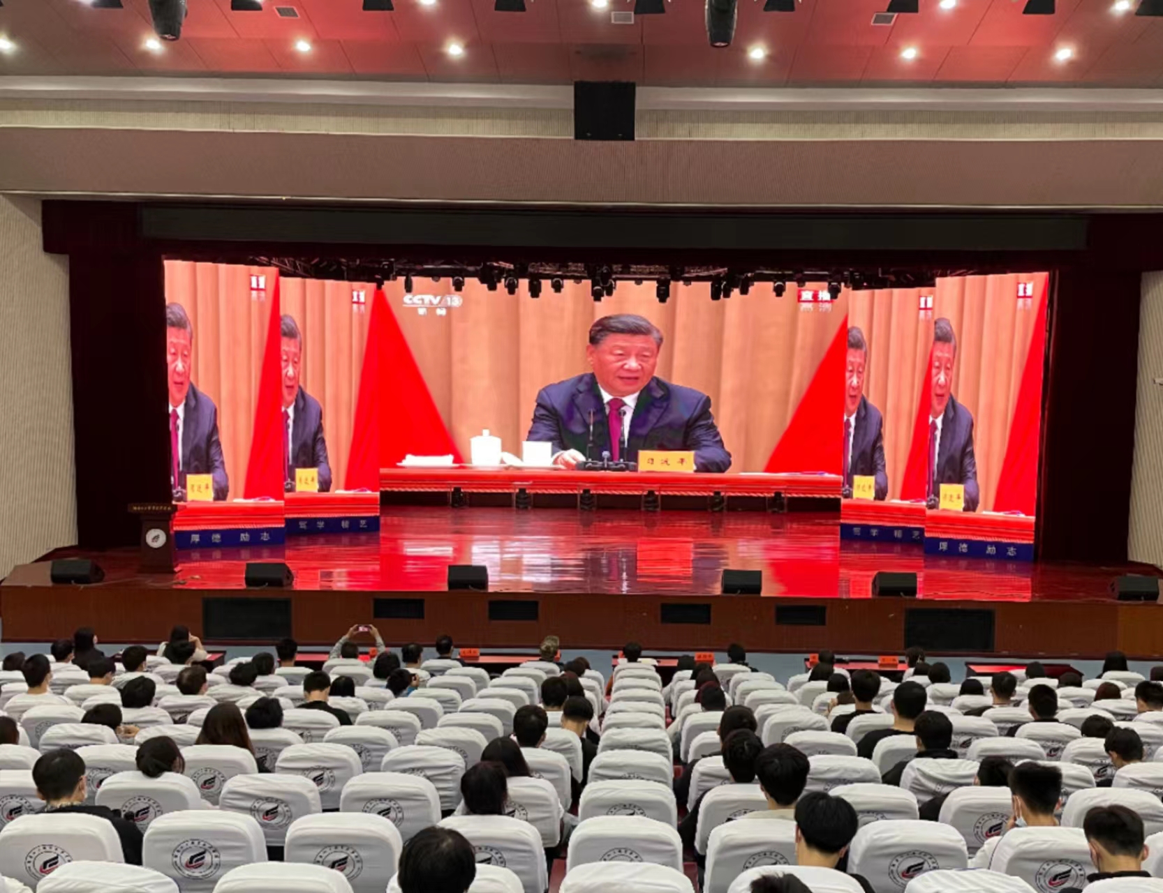 5月10日上午,我校团委在大礼堂组织500余名青年学生集中收看庆祝中国共产主义青年团成立100周年大会直播。