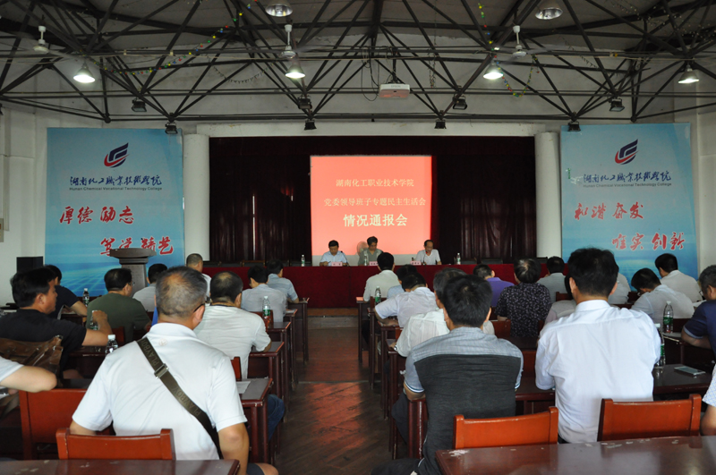 根据湖南省委党的群众路线教育实践活动领导小组、湖南省纪律检查委员会、湖南省委组织部《关于在党的群众路线教育实践活动中开好专题民主生活会的通知》(湘组〔2013〕80号)、《关于严格领导班子专题民主生活会综合评价标准的提示》和《关于认真做好第二批教育实践活动专题民主生活会有关后续工作的通知》湘群办发〔2014〕24号文件精神,经省委活动办和省委驻高校第12督导组批准,学院党委于2014年7月22-23日召开了学院领导班子党的群众路线教育实践活动专题民主生活会,省教育厅、省纪委、省委驻高校第12督导组和省石油化工行业管理办公室等单位相关领导到会指导。