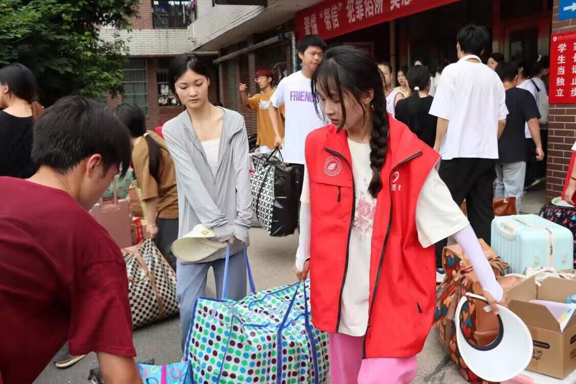 为了确保每位同学的行李都能安全到达宿舍,我校学生志愿者无畏辛苦,全部参与到了此次宿舍搬迁工作中,帮助同学们搬运行李,引导搬迁工作顺利进行。