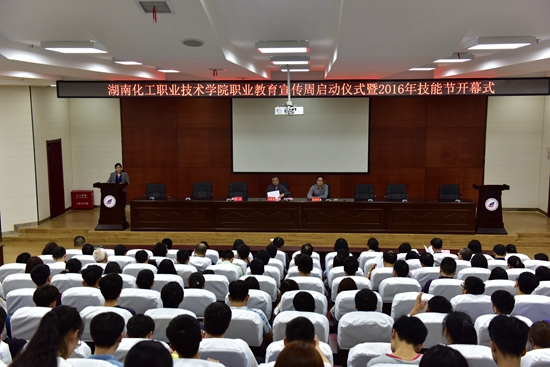 5月3日下午,学院在图书馆一楼报告厅隆重举行2016年职业教育宣传周启动仪式暨2016年技能节开幕式。启动仪式和开幕式由党委副书记兼副校长石绍军主持,分管教学工作的副校长隆平致辞,校长王雄伟讲话并宣布湖南化工职业技术学院2016年职业教育宣传周启动和技能节开幕。