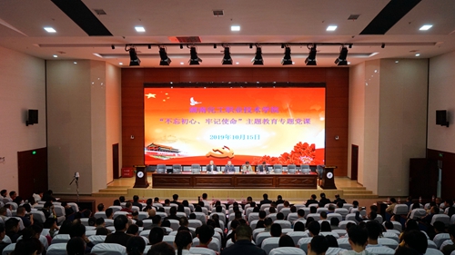 10月12日中午,学校副校长隆平在自信楼210教室以《不忘初心,牢记使命——立足岗位做贡献》为题,为自动化与信息工程学院党总支全体师生党员讲主题教育专题党课。
