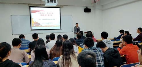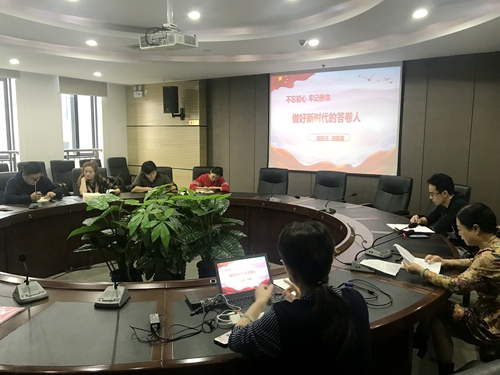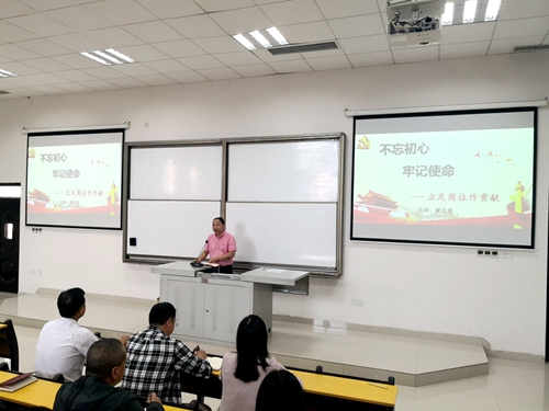 10月14日下午,学校副校长胡颖蔓在行政楼四楼会议室以《不忘初心,牢记使命——做好新时代的答卷人》为题,为机关党总支学工党支部全体党员讲主题教育专题党课。