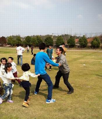 开始上课了,小朋友们坐在草地上,小手安静的放在身后,认真地听讲。他们反应敏捷,跟小“老师”们热烈地互动着,整个操场洋溢着温馨,不时发出阵阵笑声。小“老师”们个个精神抖擞,尽管授课过程中会遇到一些小问题,但他们还是坚持不懈,用热情去驱赶困难。