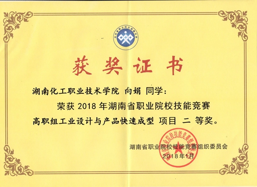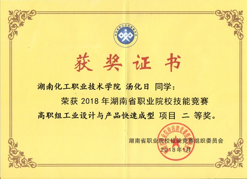 1月19日,2018年湖南省职业院校技能大赛高职组 “工业设计与产品快速成型”、 “工业产品数字化设计与制造”等4个赛项的比赛在湖南工业职业技术学院落下帷幕。我校在“工业设计与产品快速成型”赛项中获团体二等奖(第2名)的好成绩。
