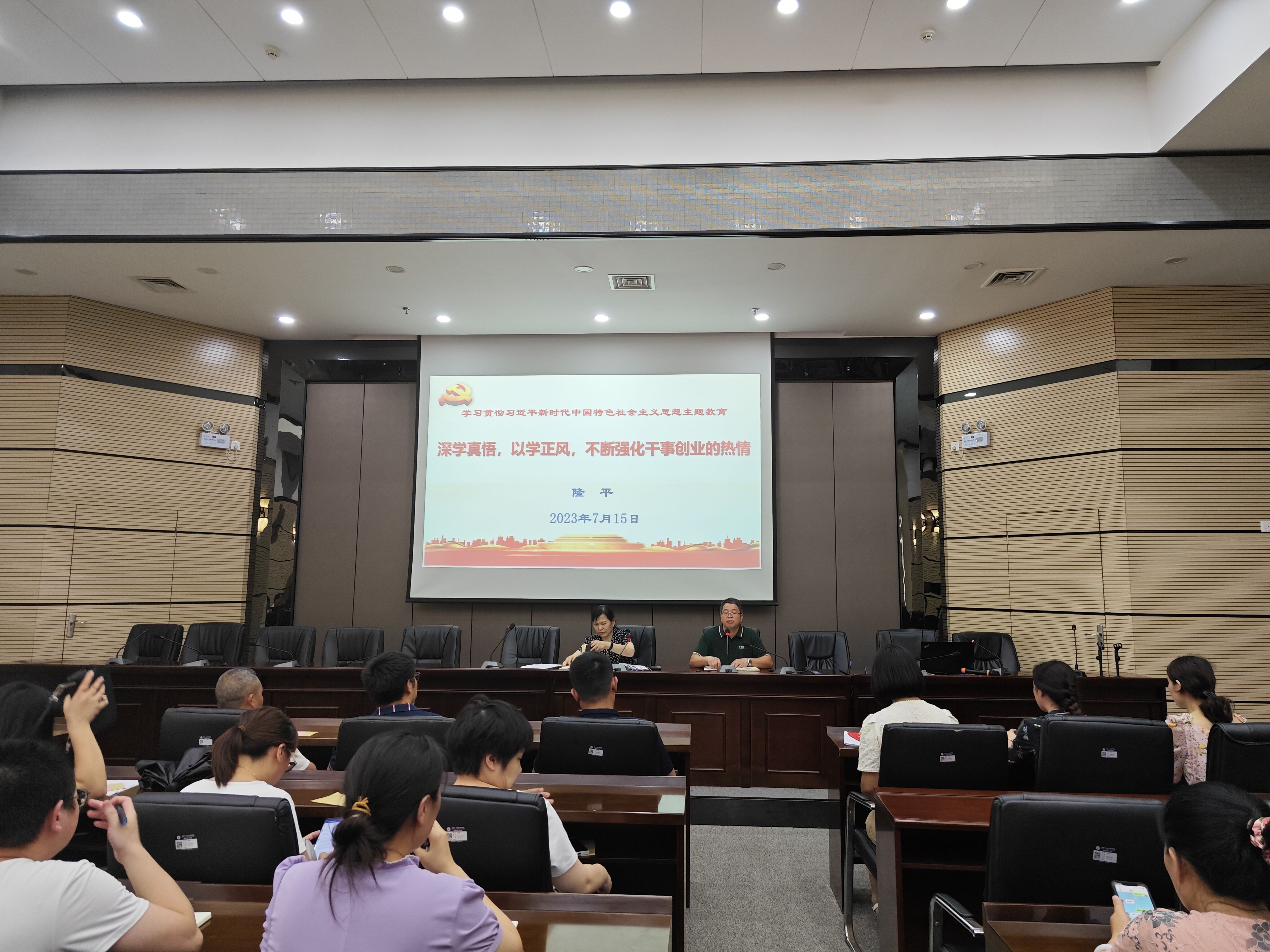 隆平以《深学真悟,以学正风,不断强化干事创业的热情》为题,结合习近平总书记考察内蒙古时讲话精神,从深学真研,强务实之风;深悟严防,扬清廉之风;深检即改,养俭朴之风三个方面进行了深入解读。她强调,我们要通过深入学习贯彻习近平新时代中国特色社会主义思想主题教育,进一步发扬斗争精神,推动学校务实作风建设,弘扬风清气正的清廉文化。
