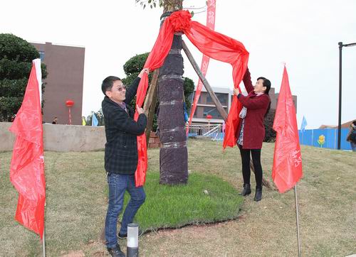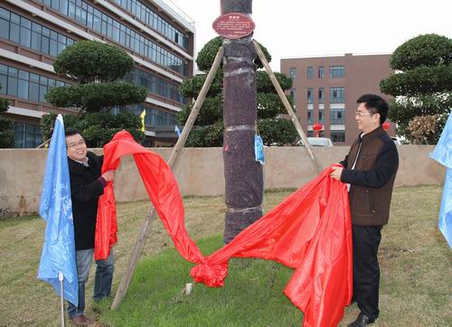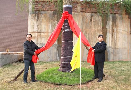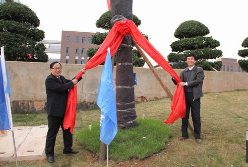 以下为学院领导与各分会负责人一起为认领香樟树揭牌: