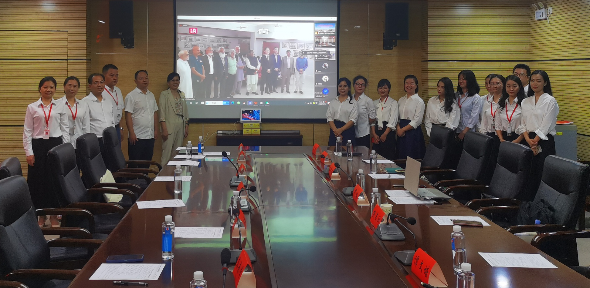 7月18日下午,“一带一路”中巴“中文+电子商务”职业技能培训班在行政楼309会议室正式开班。副校长隆平、童孟良,巴基斯坦信德省职教委员会主席Masroor Ahmed Sheikh、达伍德工程技术大学副校长Abdul Waheed Bhutto等领导出席开班仪式,项目办、外联处、基础课部、商学院等相关职能部门和教学单位负责人及培训师生共聚“云”端、擘画未来?;嵋橛赏饬Ω贝Τず尉仓鞒?,刘子璇翻译。
