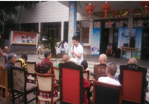 同学们围在老人们的身边,送上了中秋慰问品,为老人们捶背捏肩,与他们聊天解闷,有才艺的同学现场表演了精彩的节目,大家如相亲相爱的一家人一般和谐融洽。随后,同学们还进行了清洁服务,活动也在与老人合影留念及一一话别中圆满结束。