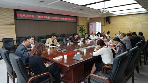 10月13日,湖南大众传媒职院院长袁维坤一行来我校交流学习,学校党委书记刘望、校长王雄伟、副书记副校长石绍军、副校长隆平及相关部门负责人参加会议。交流会在行政楼三楼会议室召开。