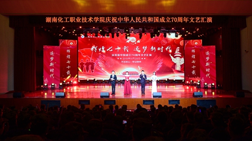 为庆祝中华人民共和国成立70周年, 9月28日下午2:40,学校在大礼堂举行了“辉煌七十载,筑梦新时代”文艺汇演。学校党委副书记、校长王雄伟,党委副书记刘毅,副校长易卫国、隆平、王为、童孟良,党委委员、组织部部长张麦秋,各二级学院院长、党总支书记和学校相关职能部门领导及教师代表、学生代表共同观看了演出。