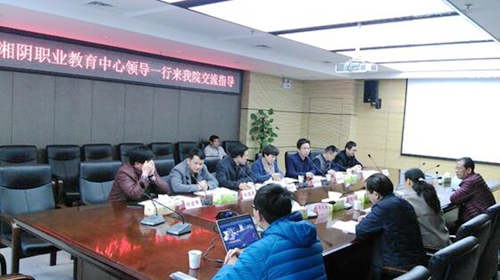 3月22日下午,湘阴县政协副主席、县职教中心副主任甘文伟带领该县教育督导室主任督学邓国顺、县政协文教体卫计委副主任刘俊军、县一职专副校长杨永明和县一职专项目办主任杨建辉、建筑设计师周中波和胥凯飞等来我校学习考察国家实验实训基地建设及管理,副校长隆平及督导处处长贺新元、项目办主任谭文培、成培处副处长严可为、化工学院博士张翔等参加交流会并陪同参观考察。