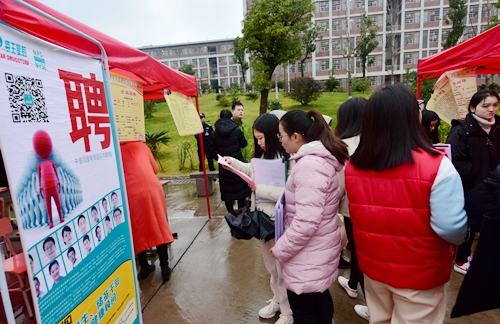 近日,寒潮来袭,株洲天气湿冷,气温骤降并夹杂着零星雨点。12月8日,湖南省化工行业2019届毕业生供需见面会暨湖南化工职业技术学院2019届毕业生、株洲市职业教育协会(产教融合联盟)供需见面会在我校新校区篮球场举行。虽然室外下着细雨,天气很冷,但供需见面会很“热”。800余家企业云集我校,为湖南省化工行业2019届高校毕业生打造“零距离就业”通道,让用人单位在我校轻松寻得“千里马”。