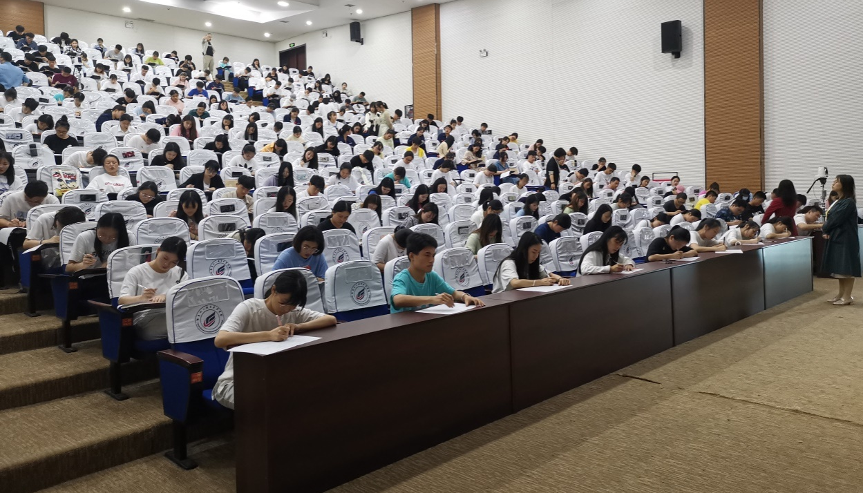 学生在图书馆报告厅考场认真答题