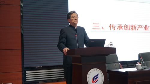 中国职业技术教育学会副会长、教育部职业技术教育中心研究所原常务副所长余祖光作题为“传承创新产业文化培养新时代复合型技术技能人才服务区域产业发展”专题报告