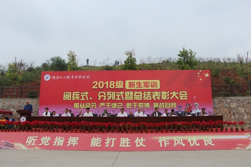 阅兵式和分列式上,跟随着党委书记刘望教授检阅的步伐,看到一个个、一组组、一队队昂扬着坚毅与自信的青春面庞,以及威武的正步走和虎虎生威的军体拳表演。现在,多少老师和学生的耳边,依然还在回响着同学们铿锵有力的口号,眼前仍然闪现着教官们及同学们矫健的身影。军训总结大会上的一张张荣誉证书,书写的是教官和新生以及带班学长和辅导员、班主任们用汗水和艰辛谱就的华章;承载的是学校领导语重心长的谆谆教诲,校长王雄伟教授引用习近平总书记的讲话道:“大学是立德树人、培养人才的地方,是青年人学习知识、增长才干、放飞梦想的地方”,勉励新生要乘新时代东风,做到以德立身、以德立学,既有高尚的品德,又有真才实学;要不负韶华、不负青春、不负梦想,珍惜三年大学时光的每一天,每一时、每一刻、每一秒;要做新时代的奋进者、搏击者、奋斗者,把梦想汇入时代洪流中,在祖国的万里长空放飞青春梦想,为民族、为国家、为人民作出新的贡献。