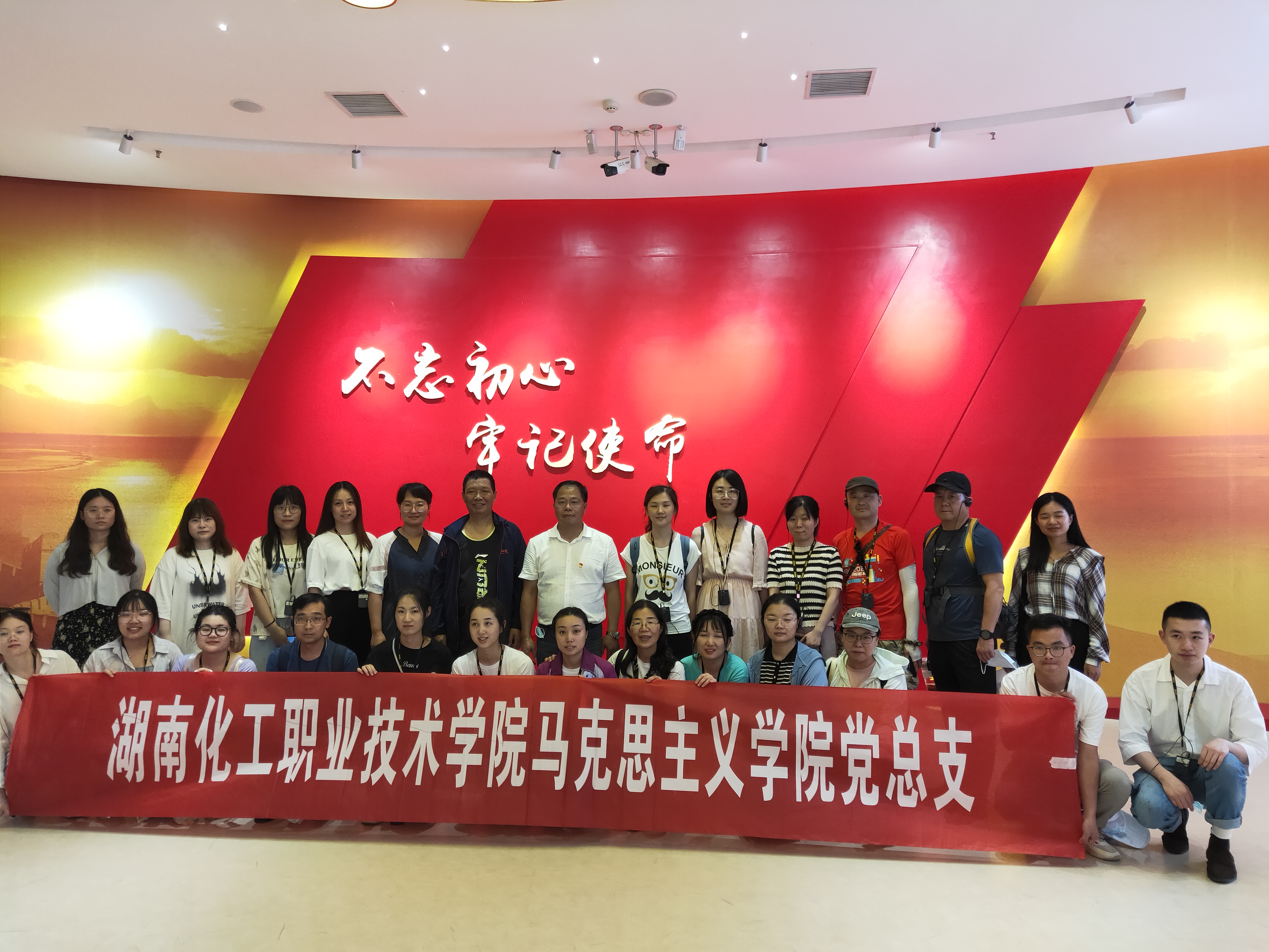 5、走红色路线,悟红色精神。依托湖南省红色资源以及暑期红色实践研修活动,开展现场情景教育,让广大党员教师更加深入了解党的历史上可歌可泣的革命烈士故事,学习革命先辈绝对忠诚、信念坚定、勇于牺牲、赤诚为民的崇高精神。马克思主义学院组织教师到株洲市烈士纪念园、郴州市资兴市苏维埃政府旧址、湘南起义纪念馆、汝城县半条被子展览馆等红色教育基地,开展“赓续红色基因,传承革命精神”党史学习教育主题党日活动。在2022年暑期三校思政课教师实践研修活动中,马院党员教师先后参观醴陵李立三故居、左权故居、渌江书院、炎陵红军标语博物馆、炎帝陵廉政文化教育基地接受党性教育。在2022年暑期实践研究活动中,马院党员教师先后前往西柏坡纪念馆、平型关大捷纪念馆、刘胡兰纪念馆、八路军太行纪念馆等地进行研学。一处处旧址讲述坚如磐石的信仰信念,一件件文物彰显历久弥新的初心使命,一座座纪念馆凝聚民族精神、传承红色基因。广大教师坚持把历史转化为课程,把史料转化为教学资料,增强红色文化的感染力。