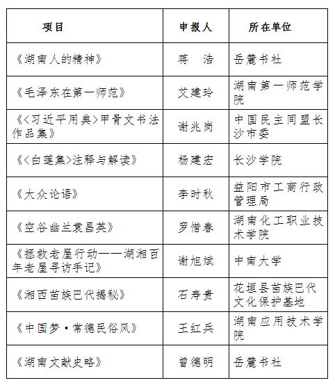 2017年度湖南省社会科学普及读物出版资助项目立项名单