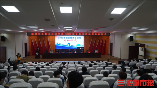 三湘都市报5月11日讯(通讯员 耿星 毛杜娟 全媒体记者 刘镇东 黄京)“每年一次的职业教育活动周,既是学校认真贯彻落实国家决策部署的具体体现,也是学校加快推进高质量发展的一次宣传与发动,更是学校向社会交流展示办学成果的一次重要机会?!?月10日,湖南化工职业技术学院举行2022年职业教育活动周启动仪式。