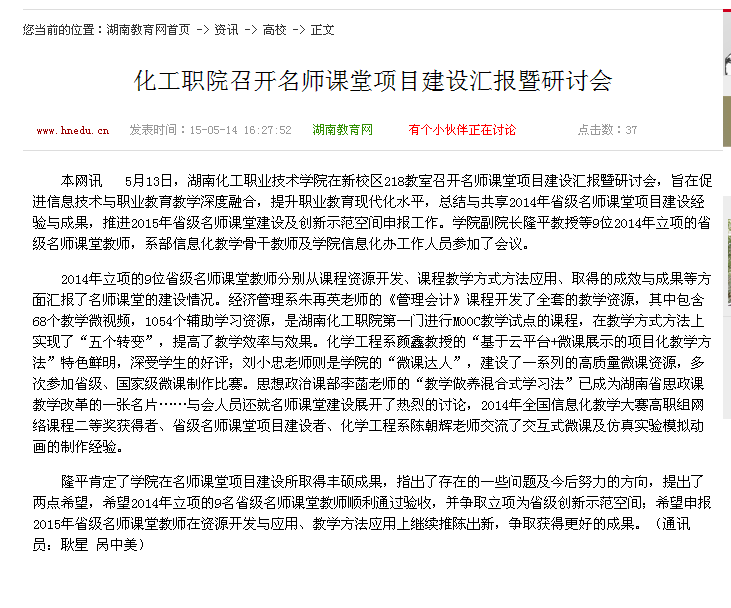 湖南教育网:化工职院召开名师课堂项目建设汇报暨研讨会