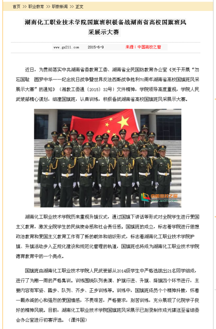 中国高校之窗:湖南化工职业技术学院国旗班积极备战湖南省高校国旗班风采展示大赛