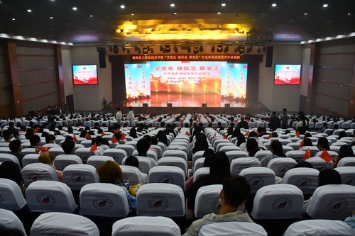 汇报会结束后,全体参会人员前往学校大礼堂,观看“学党史强信念跟党走”红色经典诵读优秀作品展演。师生们精彩的演出,感人肺腑,催人奋进。
