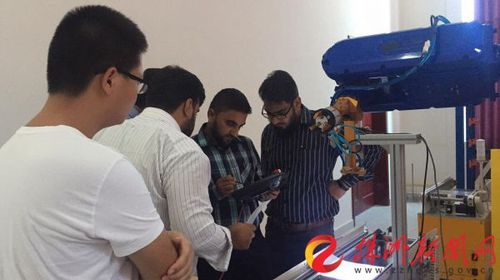 为达到最佳培训效果,湖南化工职院组织教师对学生进行汉语语言与文化教学,各专业教师前期做了大量准备工作,英语教师参与了课程资料翻译。在为期13天的专业实训中,8名学生分别参加日用化学品、工业机器人、电气技术三门课程的实训。学?;拱才帕朔岣欢嗖实目瓮饣疃侔炝昊疃?,还将安排参观株洲市规划馆及其他代表性景点。