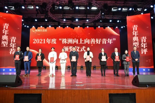 新湖南客户端12月2日讯(通讯员 向轩琳)12月1日,为学习宣传党的十九届六中全会精神,树立青年典型,讲述红色故事,让青少年思想政治引领工作和青少年党史学习教育走深走实。由团株洲市委主办的“学习宣传党的十九届六中全会精神‘百年正青春’青少年主题对话活动暨2021年度“株洲向上向善好青年”颁奖仪式在湖南化工职业技术学院举行,现场观众超800人。