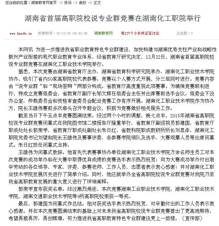 湖南教育网:湖南省首届高职院校说专业群竞赛在湖南化工职院举行