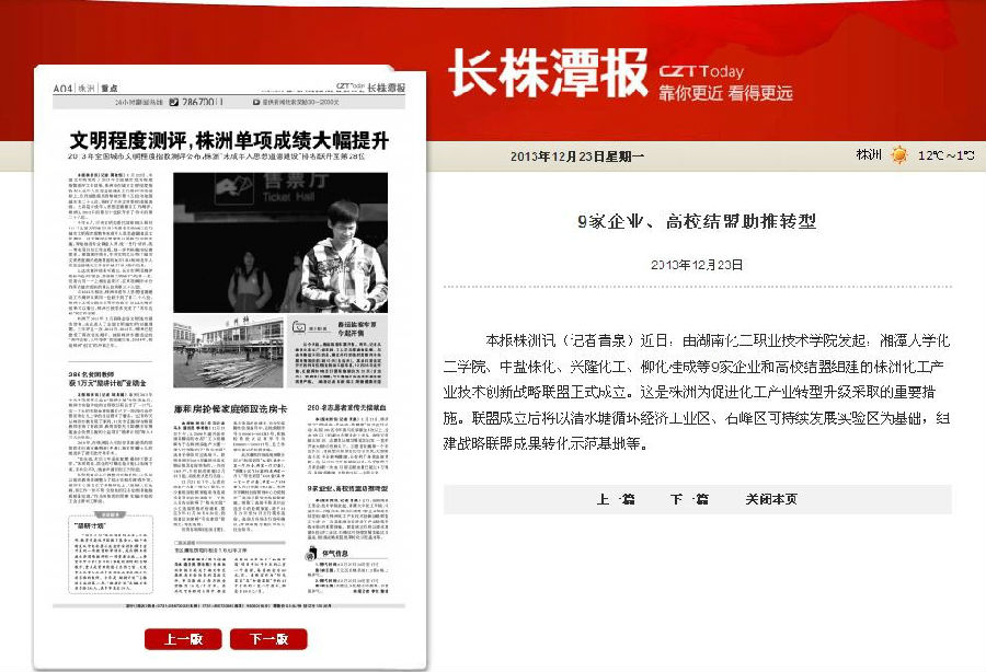 12.23日,长株潭报,报道,9家企业、高校结盟助推转型