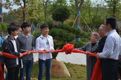 本网讯 4月14日上午,湖南化工职业技术学院新校区校园广场,一株新移栽的罗汉松下,一幕简单而感人的剪彩仪式引来了师生的观望。在株洲电视台新闻综合频道记者的摄影机前,学院党委副书记兼副校长与一对年过古稀的老人共同揭开红绸,将一块镌刻着“牵手”二字的景观石展现出来。时光回溯到开学第一天,2月26日,李岳、刘桂云这对退休老教师夫妇相携相伴走进新校区办公楼,将自己节省零花钱攒下的壹万元现金捐赠给学院用于绿化、美化校园。对外联络处为老人精心挑选了这株造型优雅的罗汉松,移栽到校园广场一角。老人的善举赢得了广大师生的尊崇,党委书记刘望还为此题词。作为学院退休教师,见证学院发展,为学院发展奉献余热,为后辈学生做出表率,对于两位老人而言,他们牵手一生,付出也是一种“幸?!?。他们牵手,将这种幸福传承给后人,让后辈深切感受“前人栽树后人乘凉”的优秀中华传统文化的同时,心中油然而生钦佩之情,也由此而生感恩之心。(欧彦麟 马中亚) 揭幕“牵手” 牵手——传承 摄像机见证“牵手”幸福
