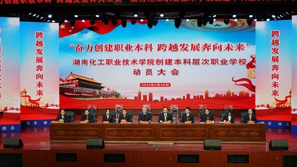 为主动适应我国高等职业教育发展面临的新形势、新任务、新要求,落实全国职业教育大会精神和全省职业教育大会精神,2月26日,新学期伊始,湖南化工职业技术学院在大礼堂召开“奋力创建职教本科 跨越发展奔向未来”创建本科层次职业学校动员大会,学校600余名教职工参加了此次会议?;嵋橛傻澄榧峭跣畚爸鞒?。