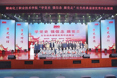 湖南化工职业技术学院“学党史 强信念 跟党走”红色经典诵读优秀作品展演。 陈昆 摄 |
