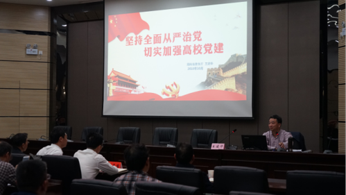 开班典礼后,王建华以“坚持全面从严治党,切实加强高校党建”为题,为学员讲授了第一课。他精准解读了全面从严治党的背景、内涵、意义与要求,深入分析了新时代高校党建工作存在的主要问题,明确提出了加强高校党建工作的具体要求与举措。讲座结合高校党建工作实际,立意深远,内容丰富,具有很强的针对性和教育意义,对学员学深悟透用好习近平新时代中国特色社会主义思想、深刻理解全面从严治党的战略布局、切实做好高校党建工作、办好新时代的职业教育具有重要的启迪、指导和引领作用。