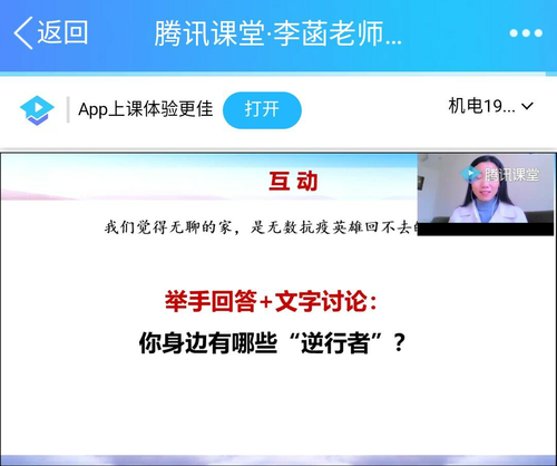 该校副校长隆平分享了自己线上教学的三点经验,“线上教学课前教学资源准备很重要,线上课堂教学设计要更注重调动学生学习的参与性,网络与平台的基本条件把控也是保持线上教学良好状态的关键?!甭∑讲唤龈锪τ眉际踝ㄒ盗礁霭嗟难霸贫恕苯彩诹恕兜缱蛹际跤胧导房危乖谙呱涎部翁?,“学校老师课前准备充分、教学平台使用熟练、线上互动热烈,老师在教学平台间切换较自然,线上课堂互动多元,如举手抢答、讨论、测试等,课堂气氛活跃。”