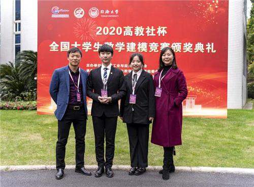 日前,2020 年全国大学生数学建模竞赛颁奖大会于在同济大学隆重举行,湖南化工职业技术学院选手邹雨江、张雨萱和指导教师覃东君、吕靖受邀参加了此次颁奖大会,并从全国政协常委、中国科协副主席、国际工业与应用数学联合会主席、全国大学生数学建模竞赛组委会顾问袁亚湘院士和同济大学副校长吕培明教授手中接过该项竞赛专科组最高荣誉——高教社杯。这是湖南化工职业技术学院继 2016 年获得专科组 " 高教社杯 " 后再一次登上该项赛事最高领奖台,也是截至目前两次摘取全国大学生数学建模竞赛 " 高教社杯 " 桂冠的国内两所高职院校之一。