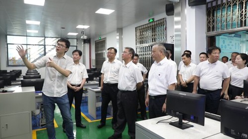 曹慧泉一行来到湖南化工职业技术学院实训中心,实地考察调研了啤酒生产车间、GMP实训车间、煤制甲醇仿真实训工厂,并听取了王雄伟对近年来该校建设发展情况的介绍。曹慧泉边听边看,对该校办学模式和发展成效给予充分肯定,希望该校牢牢坚持应用型高校发展方向,深化产教融合、校企合作,努力培养更多工匠大师和企业家,为株洲经济社会发展作出更大贡献。
