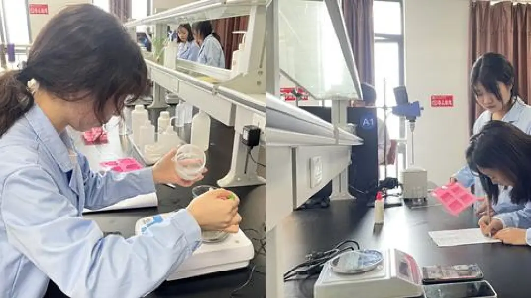 日前,湖南化工职业技术学院化妆品技术专业的教师殷洁打破传统的教学方式,按照制“皂”美、创新美、传播美的教学思路,与学生们在实训室开启了一段浪漫的技能成才之旅。