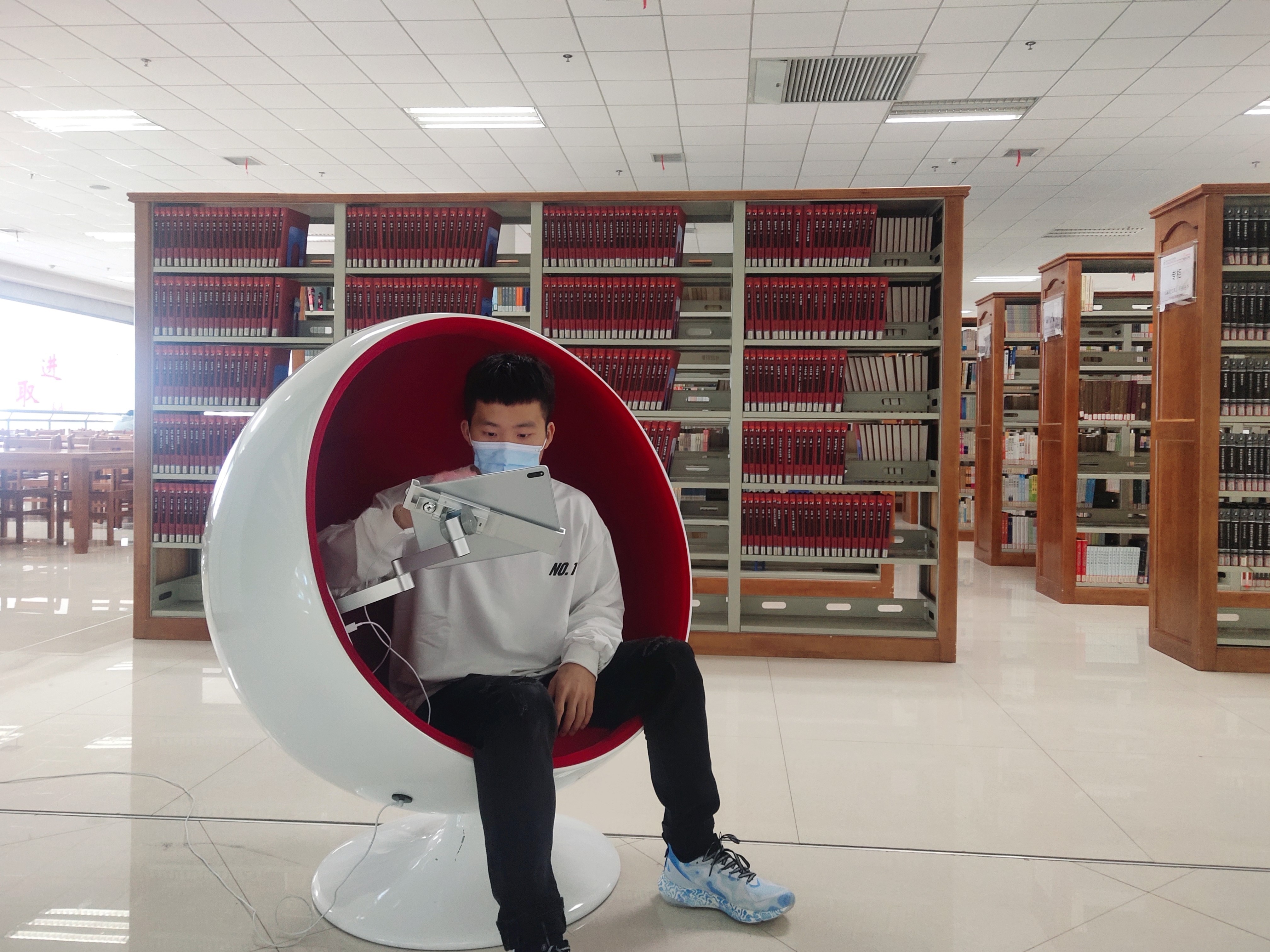 安静的图书馆里能“听书”吗?“有声阅读区”可以满足读者的“听书”需求。走进湖南化工职业技术学院图书馆借阅大厅,一眼就能看到两台造型圆润的座椅,这是图书馆的智能化设备—有声太空舱。