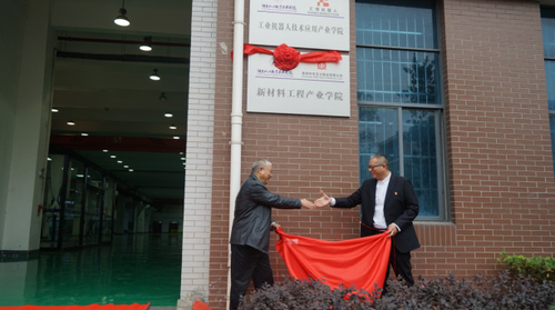 韩军一行在湖南化工职院领导的陪同下,参观了该校工业机器人技术应用基地、智能制造柔性生产性实训基地,对学校在实习、实训车间建设的投入力度表达了高度的赞扬。陈超与郑业方代表校企双方签订了校企共建“新材料工程产业学院”协议,并向株洲中车天力锻业有限公司进行了“新材料工程产业学院”授牌。王雄伟与韩军在工业中心楼前为“新材料工程产业学院”揭牌,湖南化工职院和株洲中车天力锻业有限公司共建的“新材料工程产业学院”正式成立,实训车间正在实训的学生共同见证了校企共建“新材料工程产业学院”揭牌仪式,并与领导在产业学院牌匾下合影留念。