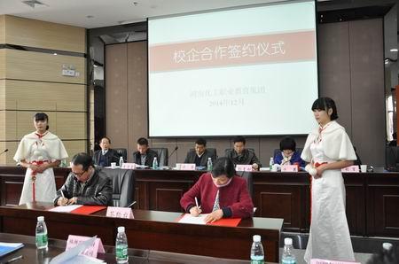 年度工作报告结束后,现场举行了湖南化工职业教育集团校企合作签约仪式,湖南化工职业技术学院先后与湖南湘江关西涂料有限公司签订订单培养协议,与株洲兴隆新材料股份有限公司签订校企深度合作协议,与深圳市百莲千滋电子商务有限公司签订设立“百莲千滋”奖学金协议,与中盐株化集团签订了校企合作共建危险化学品作业人员岗前培训中心协议。