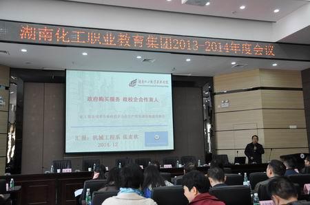 会上还就湖南化工职业教育集团教科研成果进行了发布,其中包括:湖南化工职院化工系应用化工技术专业建设成果《打造化工仿真教学平台,引领化工类专业教学改革》;湖南石化职院校企共建培训教学资源库案例《校企合作开发企业岗位??榕嘌悼纬?/span> 搭建校企共享信息化教学平台》;湖南化工职院机械系化工装备技术专业政校企合作生产性实训基地建设成果《政府购买服务政校企合作育人》;湖南化工职院自动化与信息工程系教学团队建设成果《以提升专业核心竞争力为目标全面打造高素质“双师型”专业教学团队》;湖南化工职院经管系教科研成果《以教研教改为先导,深化专业建设与改革》。