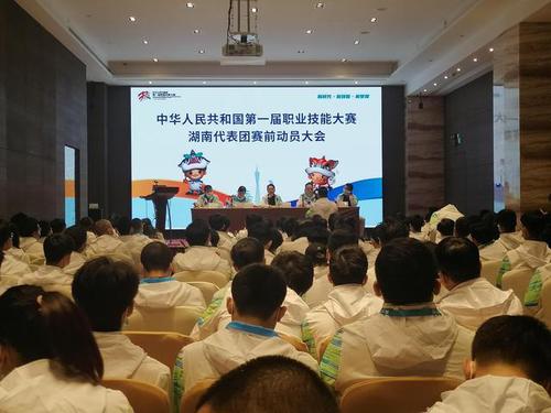 比赛前夕,湖南化工职业技术学院代表队参加了湖南代表团赛前动员大会,省人社厅党组书记、厅长唐白玉进行了赛前动员。学?;Чこ萄г旱匙苤榧桥碇竞辍⒔塘酚魑目却戳搜5澄?、行政的关怀,对选手心理素质、体能状态进行跟踪和及时疏导,对战略战术进行最后的安排和部署,力争把选手的竞技状态调整到最佳状态,以精益求精的工匠精神向着世界技能大赛的梦想舞台前进、前进、再前进,为学校“双高”计划再添光彩。