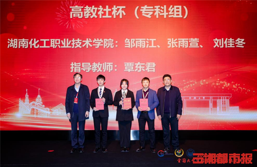三湘都市报12月7日讯(通讯员 覃东君 吕靖 记者 刘镇东 黄京)再获殊荣!2020年全国大学生数学建模竞赛颁奖大会于12月5日在同济大学举行,湖南化工职业技术学院选手邹雨江、张雨萱和指导教师覃东君、吕靖获得该项竞赛专科组最高荣誉——高教社杯。这是湖南化工职业技术学院自2016年获得专科组“高教社杯”后再一次登上该项赛事最高领奖台,也是截至目前两次摘取全国大学生数学建模竞赛“高教社杯”桂冠的国内两所高职院校之一。